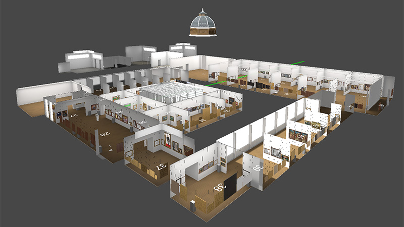 Our team at Topicbird worked with universities, museums and institutions to realize historic art exhibitions in Virtual Reality. Visitors were able to teleport through the rooms by using an integrated map, and get additional information by using the hand controllers. We also developed tools for researchers to place photographs and other exhibits on the walls and decorate them with procedurally generated frames.
